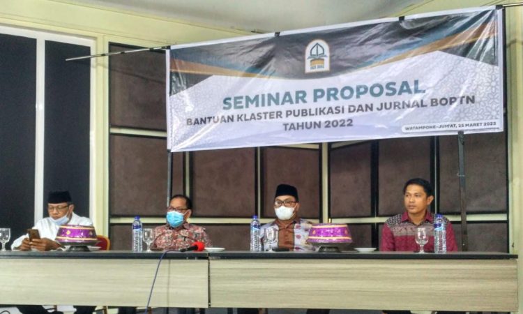 Sebanyak 13 orang dosen IAIN Bone yang dinyatakan lolos pada seleksi Penerima Bantuan Publikasi dan Jurnal BOPTN tahun 2022 mengikuti seminar proposal yang digelar oleh Lembaga Penelitian dan Pengabdian Masyarakat (LPPM) IAIN Bone di Hotel Helios Watampone, Jumat (25/3/2022).