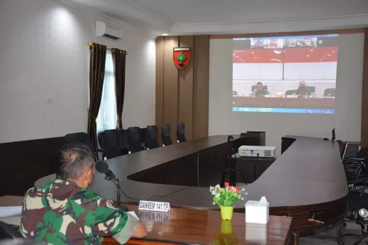 Watampone -Berandankrinews.com Pengarahan Melalui Vicom(Video Conference) Panglima Kodam XIV/Hsn Mayjen TNI Andi Muhammad, S.H. Kepada para Danrem, Dankabalakdam XIV/Hsn beserta jajaran Dandim sewilayah Kodam XIV/Hsn. Jumat 18/03/2022