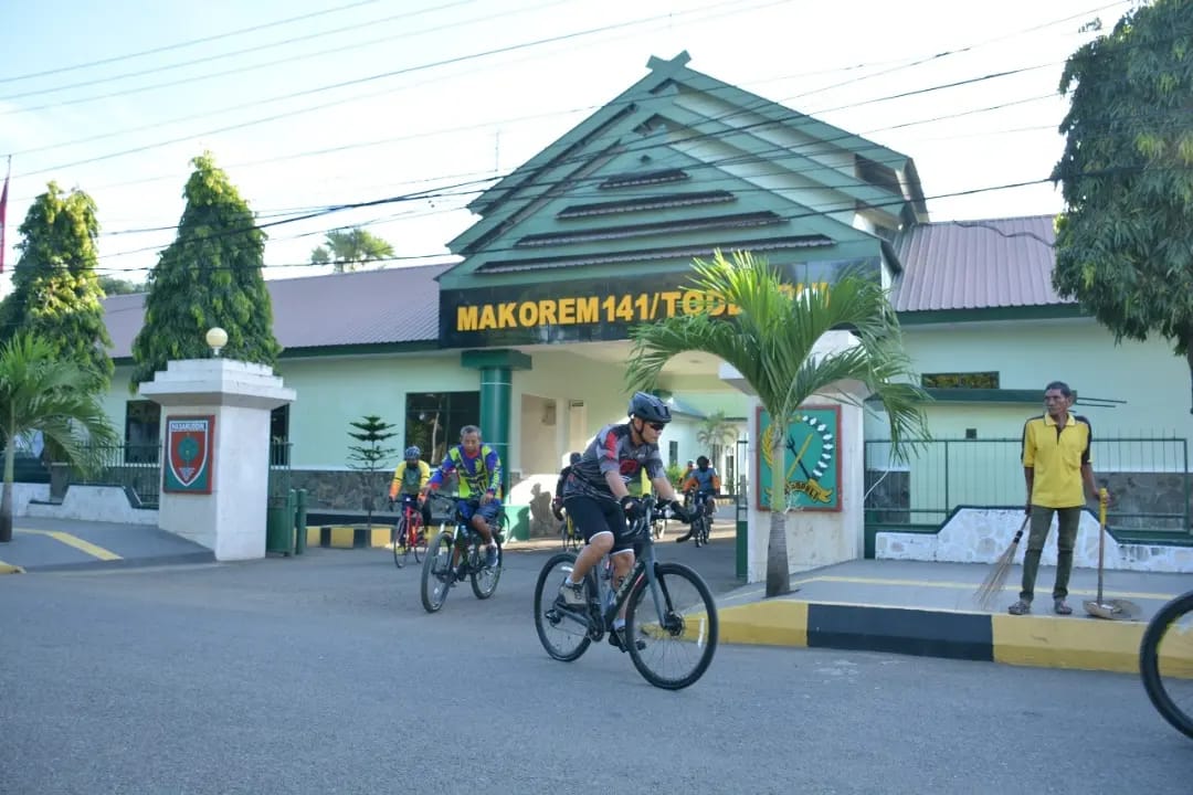 Kapenrem mengatakan “Kegiatan sepeda santai Ini merupakan ajang olahraga bersama, di samping menjaga stamina tubuh. juga bisa menjalin silaturahmi antara personel jajaran Korem 141/Tp sekaligus mementau wilayah sambil Refresing. “Ungkapnya.