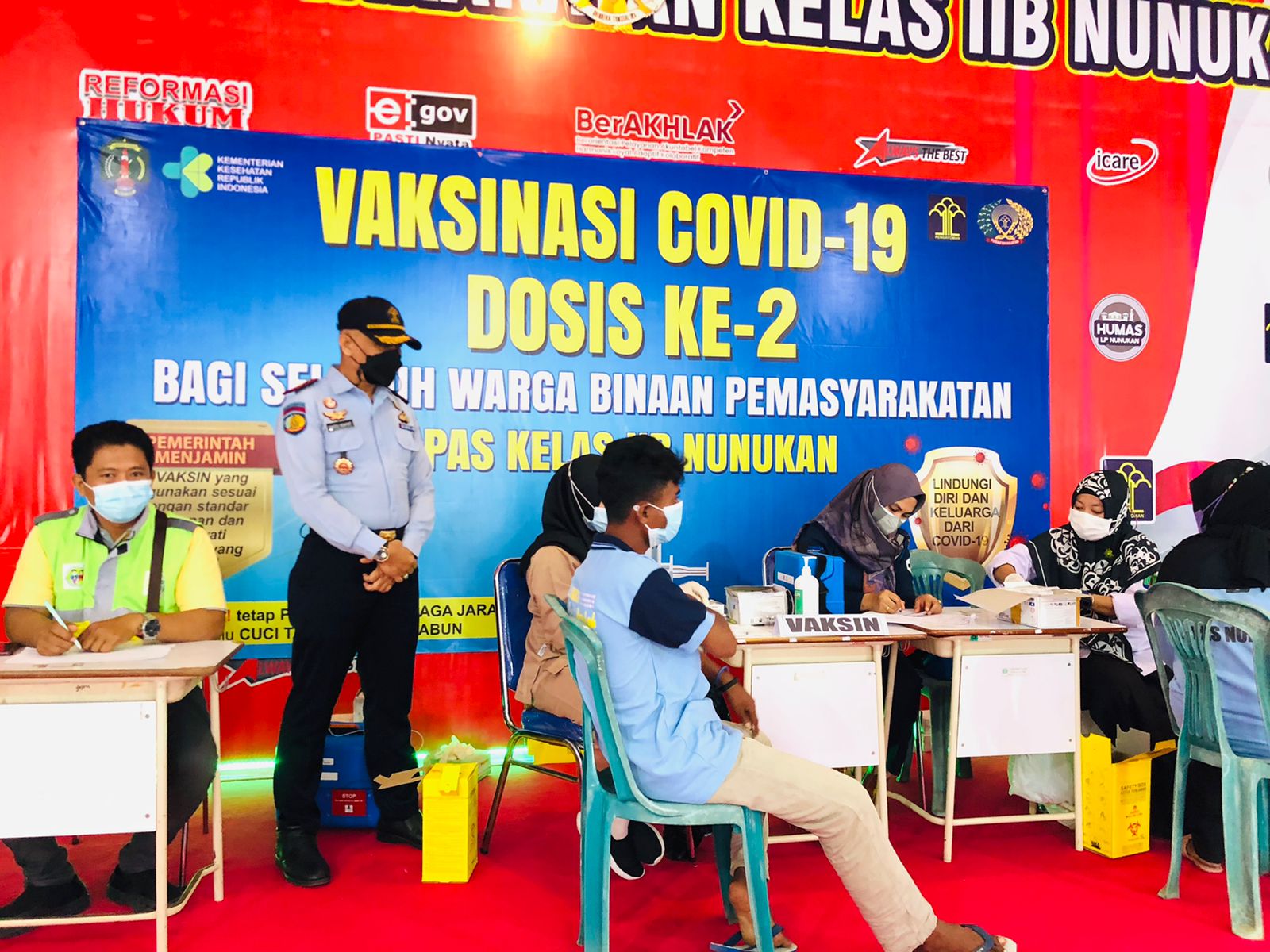 Pada pelaksanaan Vaksinasi Covid-19 bagi Tahanan/Narapidana Lembaga Pemasyarakatan kelas IIB Nunukan Tahap Ke-2 (Kedua) tersebut dimana dalam perlaksanaannya bekerjasama dengan Dinas Kesehatan Pemerintah Kabupaten Nunukan dan Kodim/ TNI Kabupaten Nunukan.