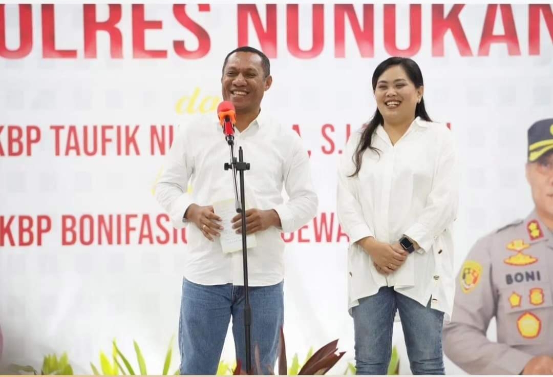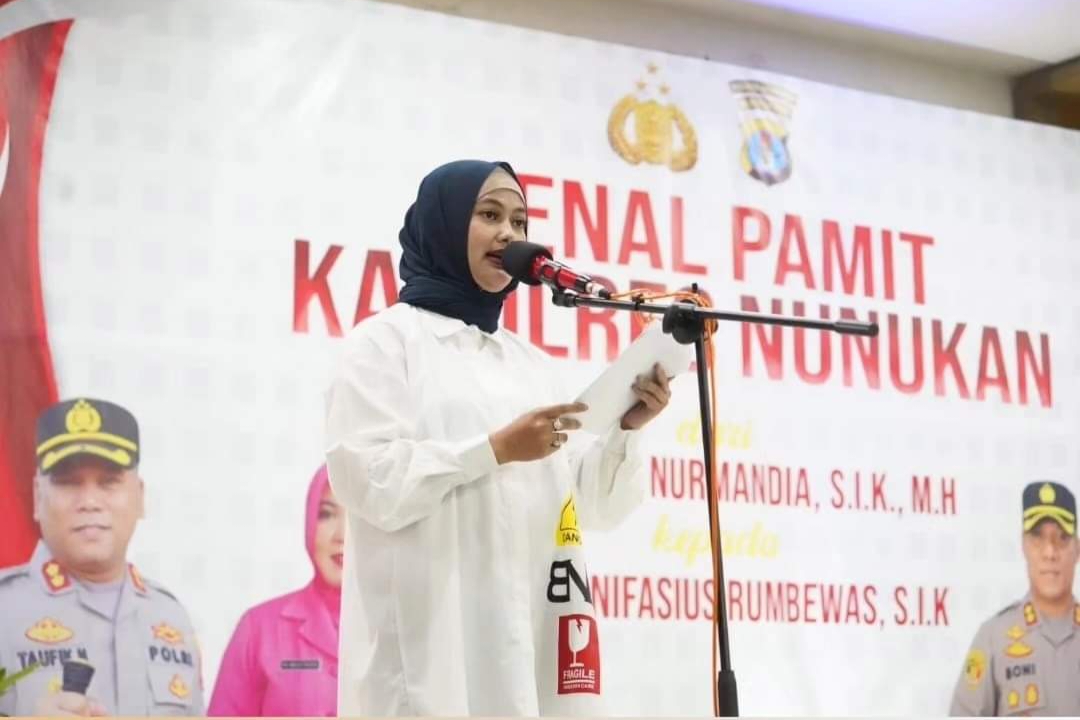Tak lupa Laura menyampaikan ucapan selamat datang di Kabupaten Nunukan kepada Kapolres yang baru AKBP Bonifasius Rumbewas, S.I.K.