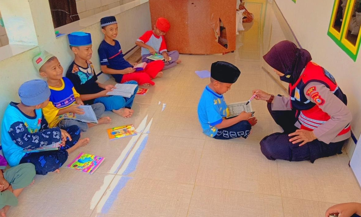 Seperti pada Rabu (26/05/2021) Aipda Suhati, SH mengajar anak-anak mengaji dan hapal Al-Qur’an di masjid Nurul Rauf Dusun Adinge Desa Patangnga Kecamatan Tellu siattinge Kabupaten Bone