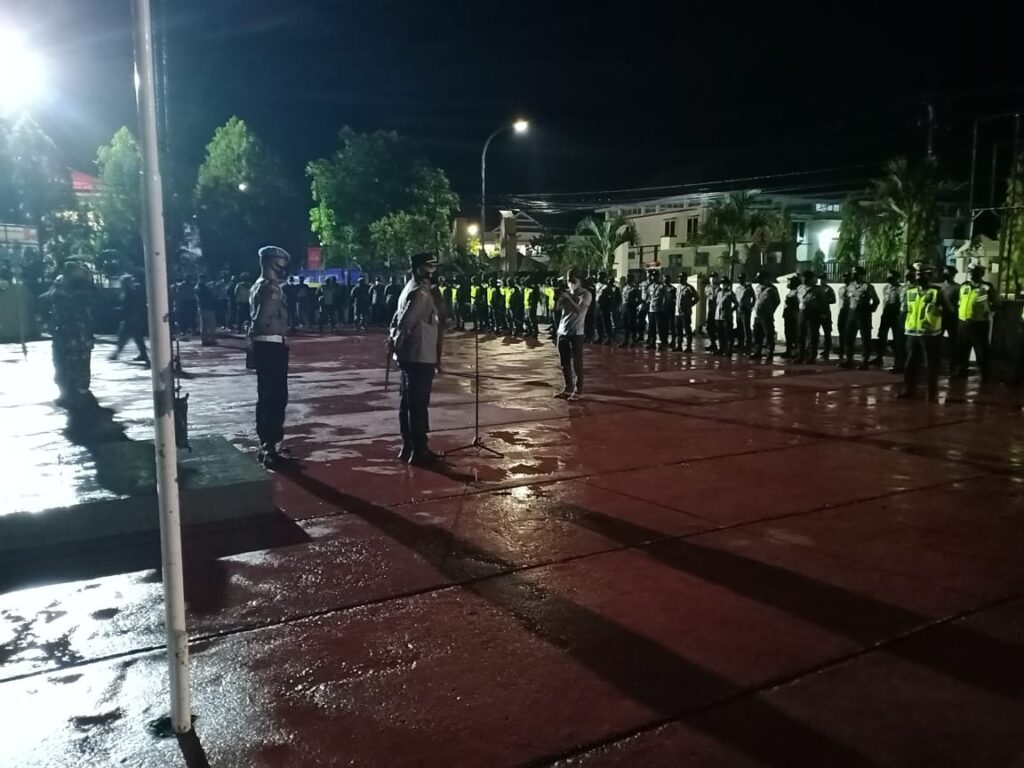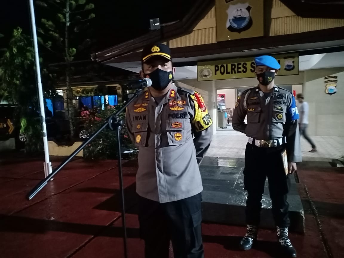 Sinjai -Berandankrinews.com Kepala Kepolisian Resor Sinjai Ajun Komisaris Besar Polisi (Akbp) Akbp Iwan Irmawan,S.Ik, M.Si pimpin apel kesiapan pengamanan malam takbiran dalam rangka menciptakan situasi yang aman dan kondusif dimalam hari raya Idul Fitri 1442 H sebagai antisipasi gangguan kamtibmas wilayah. Rabu malam (12/5/2021) pukul 20.00 wita.
