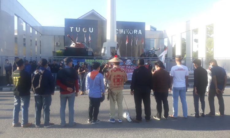 Nunukan – Puluhan masa yang terabung dalam Aliansi Kebangsaan Kabupaten Nunukan berkumpul di Pelataran Tugu Dwikora, Nunukan, Sabtu (29/1/2022).