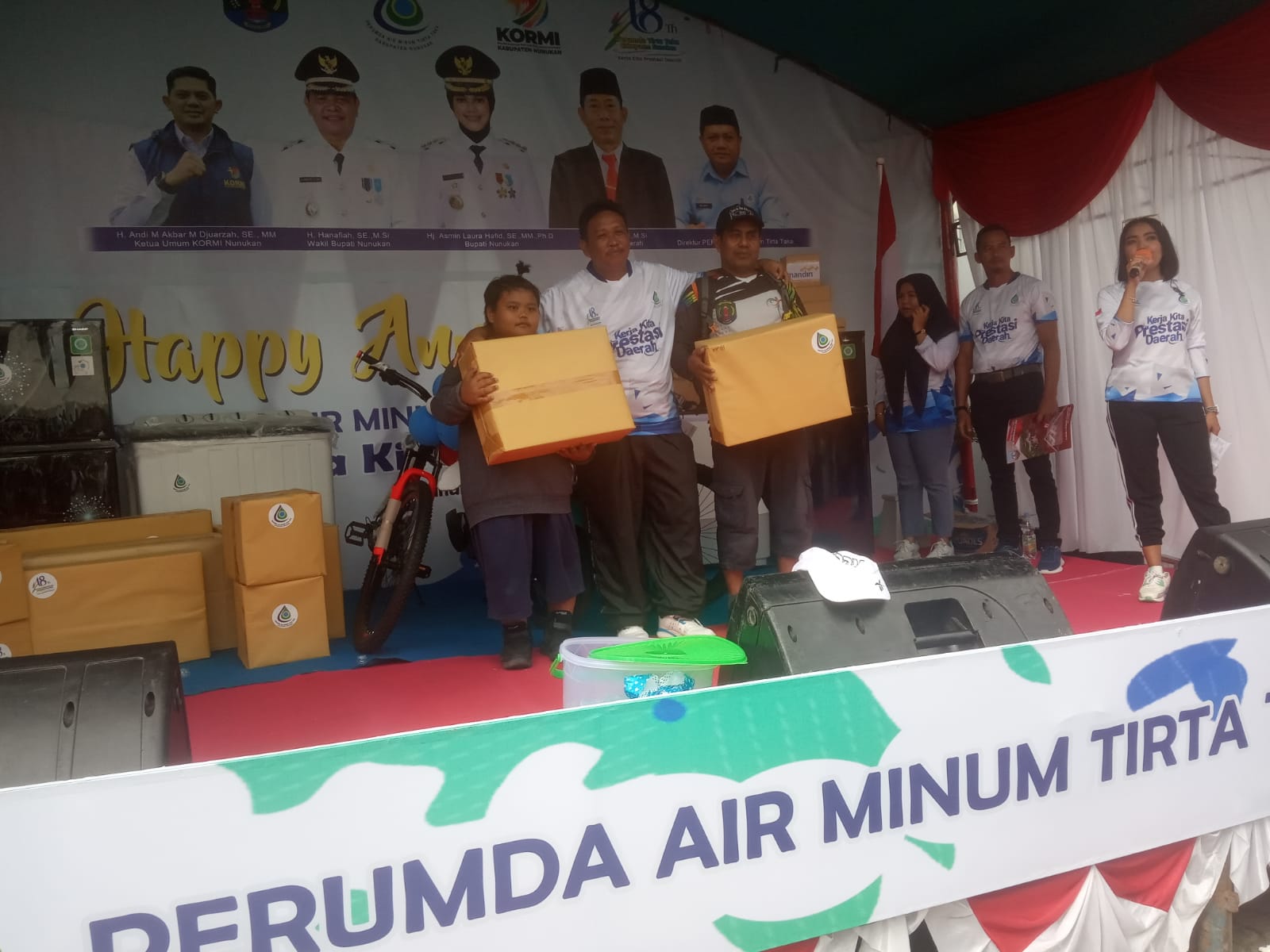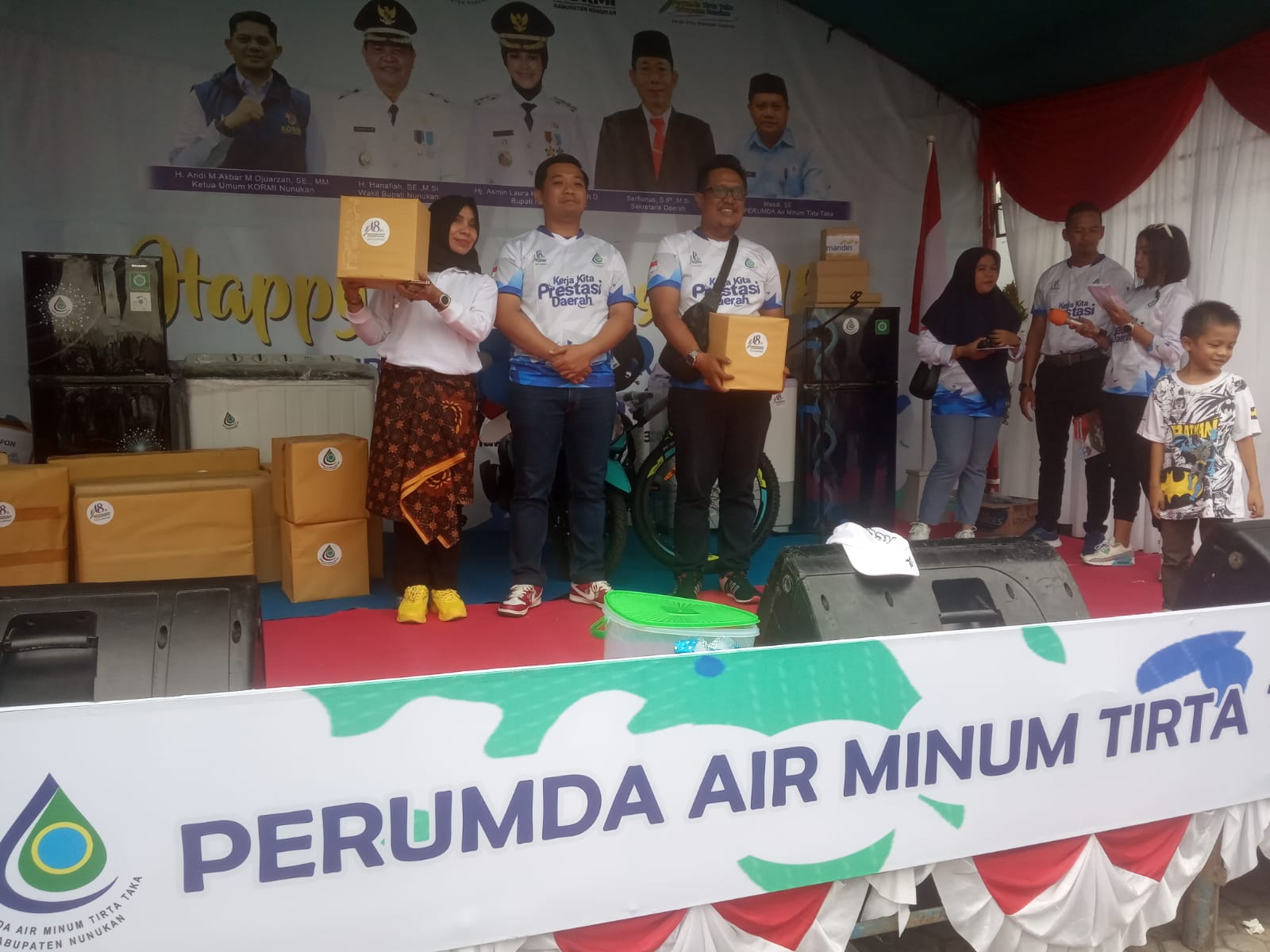 Selain rangkaian agenda senam bersama dan jalan sehat dengan rute start dari Alun Alun – Jl.Yos Sudarso – Jl. Tanjung – Jl.Jaya Sakti – Jl. Bhayangkara – Jl. Ahmad Yani lalu finish kembali ke Alun Alun, Perumda Air Minum Tirta Taka Kab.Nunukan juga menggelar pembagian hadiah kupon Doorprize berupa hadiah utama sepeda motor, sepeda, kulkas, tv, handphone, dispenser dan lain lain bagi masyarakat Nunukan.