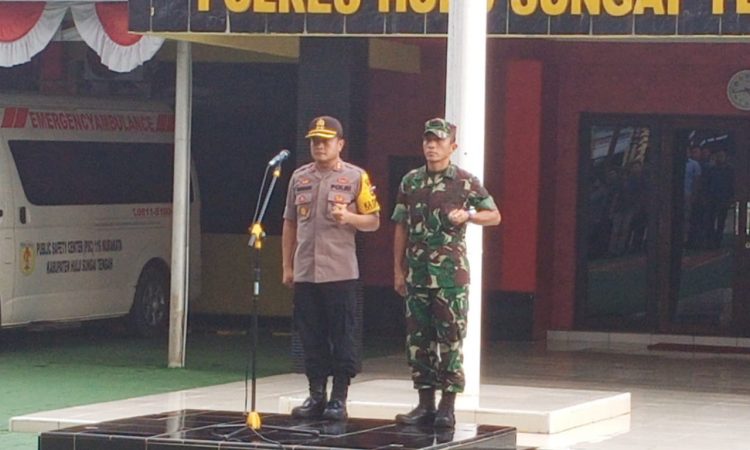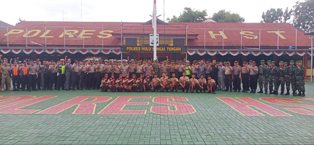 Bertindak sebagai inspektur upacara Kapolres HST AKBP Danang Widaryanto,Sik dan Dandim 1002/Barabai Letkol Inf Muh.Ishak H.Baharuddin,S.I.P dengan Komposisi pasukan apel seluruh PJU Polres HST,Plh.Pasi Intel Kodim 1002/Barabai Lettu Inf Sutanto, para perwira Polres HST,anggota Kodim 1002/Barabai,Aanggota Polres HST, Satpol PP HST,Dinas Perhubungan HST, Pramuka Saka Bhayangkara dan tim Medis dari 119 Rescue HST.