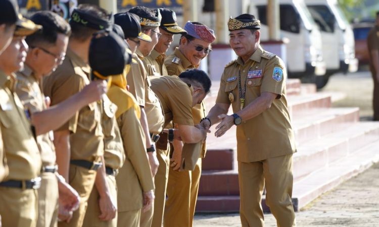 TANJUNG SELOR – Gubernur Kalimantan Utara (Kaltara) Dr. H. Zainal Arifin Paliwang, S.H., M.Hum memimpin apel perdana dilingkup Pemerintahan Provinsi Kaltara usai liburan Hari Raya Idulfitri 1446 Hijriah, Selasa (8/4).