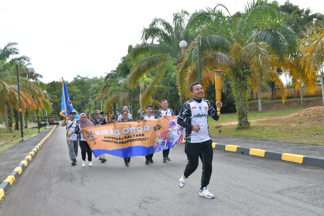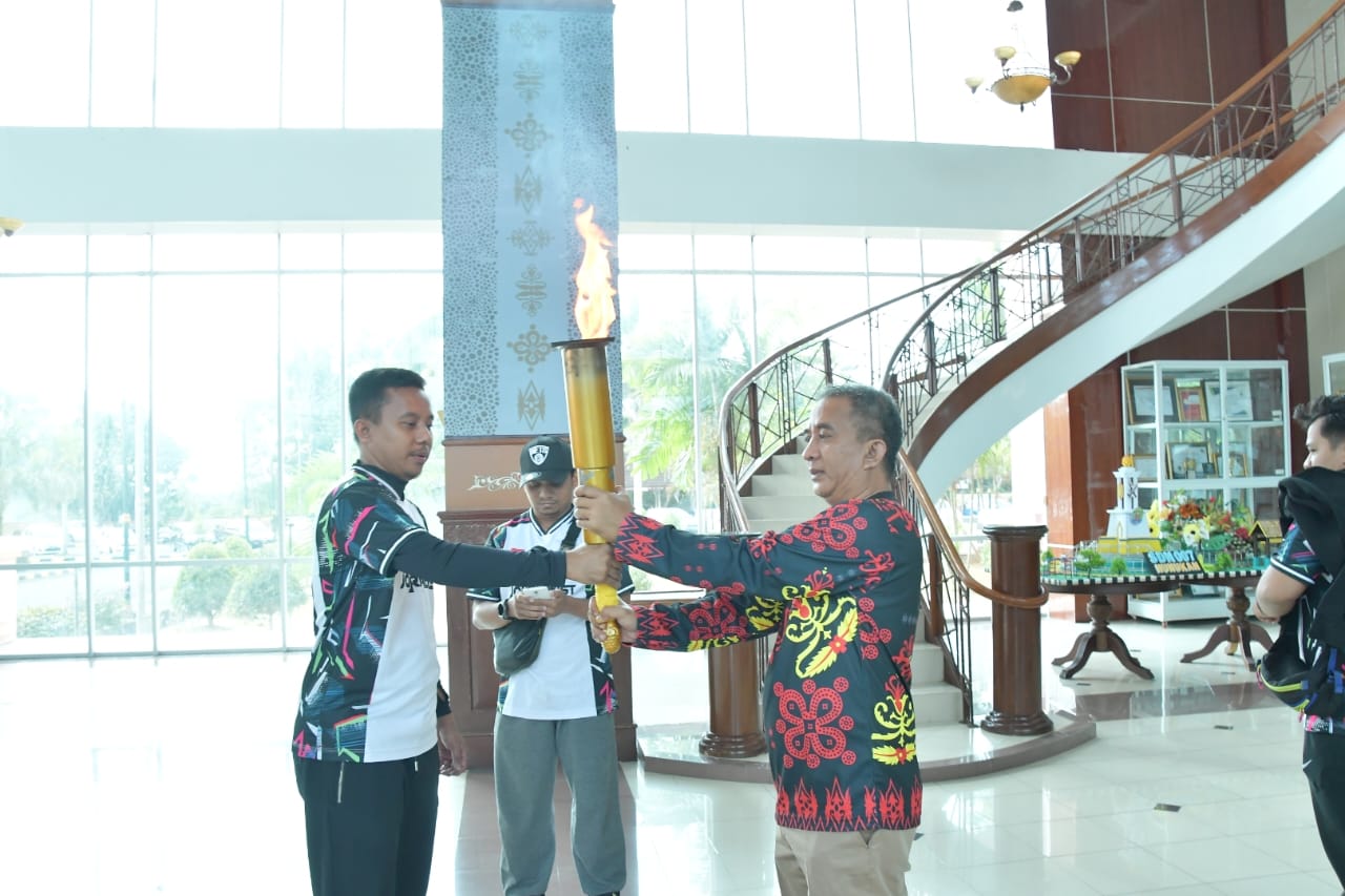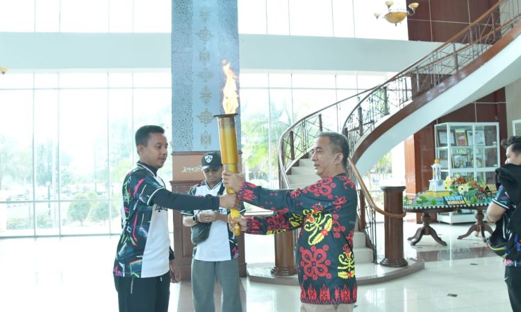 NUNUKAN – Sesampainya di Nunukan, obor Pekan Olahraga Wartawan Daerah (Porwada) I Kaltara, diterima langsung oleh Asisten Pemerintah dan Kesra Pemkab Nunukan, Abdul Munir.