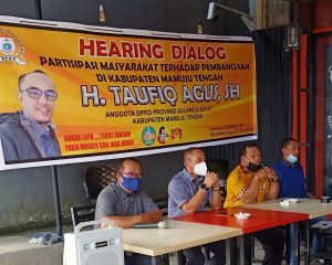 Mateng hari Minggu tanggal 28 Maret 2021 ,sesuai dengan agenda yang sudah ditetapkan dalam rapat bamus anggota DPRD Sulawesi barat H. Taufiq Agus SH,melaksanakan kegiatan HEARING DIALOG Tahap I masa sidang II di karossa kabupaten Mamuju tengah dengan tema partisipasi masyarakat dalam pembangunan di Mamuju tengah , pada acara tersebut telah hadir beberapa tokoh masyarakat antara lain Ustadz : Baharuddin Mewakili Ka. Desa Karossa bapak. Nurdin. Kepala Dusun Duri Kumba An. Alimuddin Mewakili masy. Pantai Karossa An. Abdillah