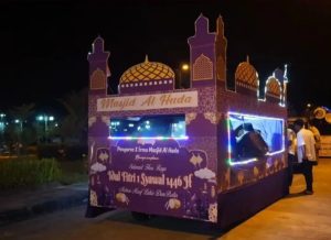 Bupati H. Irwan bersama keluarga tiba di Masjid Al – Azis lebih awal dari waktu pelaksanaan Sholat Ied pada umumnya.