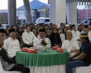 Sebelum menikmati takjil buka puasa yang telah disajikan, Gubernur Zainal bersama seluruh tamu dan undangan mengikuti tausiyah yang disampaikan oleh Ustadz Ambo Intang Spd.I.