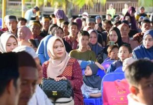 Acara berlangsung penuh khidmat dengan pembacaan ayat suci Al-Qur’an, tausiah keagamaan, serta penyerahan bantuan kepada tokoh agama, ibu tunggal dan anak yatim