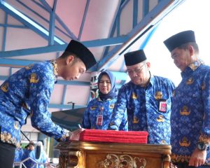 Dengan mengusung tema “Pancasila Jiwa Pemersatu Bangsa Menuju Indonesia Emas Tahun 2045”, wakil Bupati Hanafiah membacakan pidato Kepala Badan Pembinaan Ideologi Pancasila RI.