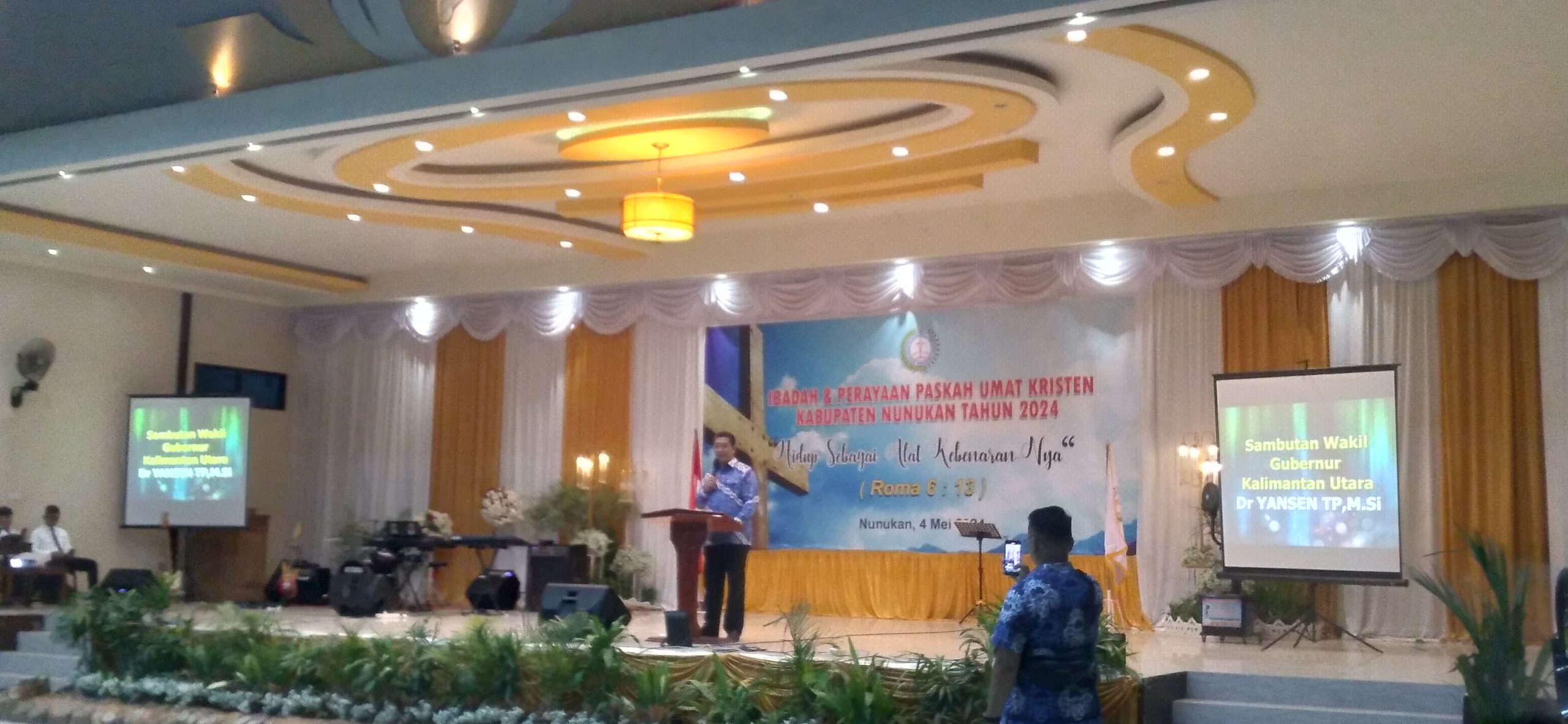 NUNUKAN-Wakil Gubernur Kalimantan Utara Dr.Yansen TP, M.Si menghadiri ibadah dan perayaan paskah yang diselenggarakan oleh badan musyawarah antar gereja (Bamag) Kabupaten Nunukan, bertempat di Gedung Akbar Ali.Sabtu, (4/05) Malam.