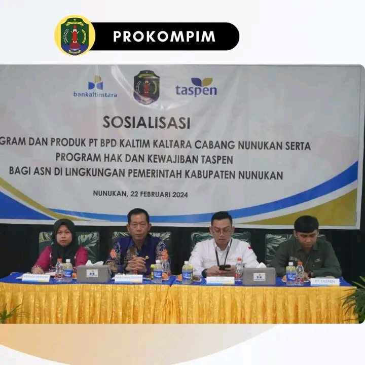 NUNUKAN- Pemerintah Daerah Kab. Nunukan Melalui BKPSDM Nunukan Bersama dengan BANKALTIMTARA Cab. Nunukan dan PT. Taspen Tarakan Melaksanakan Sosialisasi Program dan Produk PT. BANKALTIMTARA Cab. Nunukan Serta Program Hak dan Kewajiban Taspen Bagi ASN Di Lingkungan Pemerintah Kab. Nunukan. Kamis (22/2).