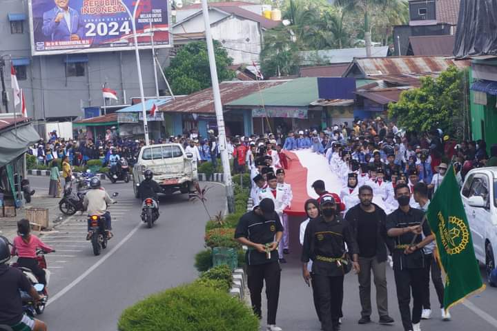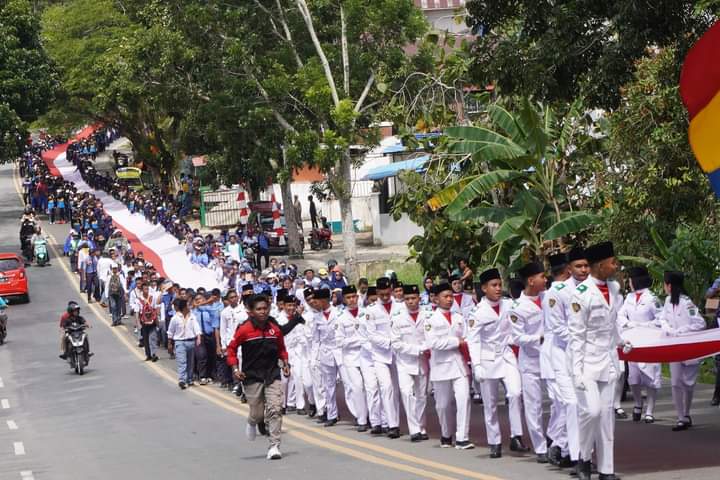 NUNUKAN – Semangat patriotisme dan nasionalisme di bumi perbatasan dalam rangka memperingati HUT Kemerdekaan Republik Indonesia Ke-78 tahun di Kabupaten Nunukan kali ini dimeriahkan dengan kegiatan Kirab Merah Putih sepanjang 1000 meter yang dibentangkan mulai dari GOR dan diarak sampai Alun-alun Nunukan, Sabtu (19/08/2023).