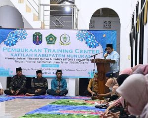 NUNUKAN – Mewakili Bupati Nunukan,Kabag Kesra Sekretariat Daerah Kab. Nunukan H. Khairil hadir dan membuka secara resmi Acara Training Center (TC) Khafilah STQH I dan MTQ Mualaf V Tingkat Provinsi Kaltara Tahun 2025. Selasa (1/7/2025).