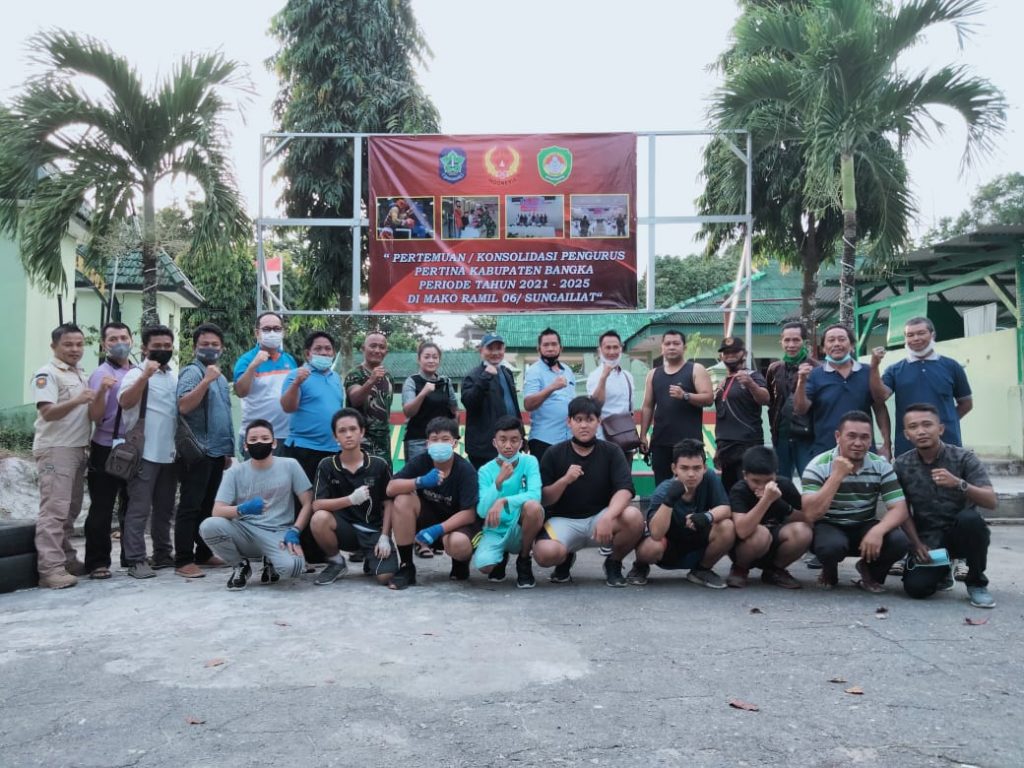 Bangka–Berandankrinews.com— SETELAH RESMI dilantik, pengurus Persatuan Tinju Amatir Indonesia (Pertina) Bangka dibawah kepemimpinan Mayor Inf. Danil B. Gala adakan acara Pertemuan/Konsolidasi Pengurus Pertina periode 2021-2025 bertempat di Mako Ramil 06/Sungailiat, pada hari Rabu (17/07/2021).