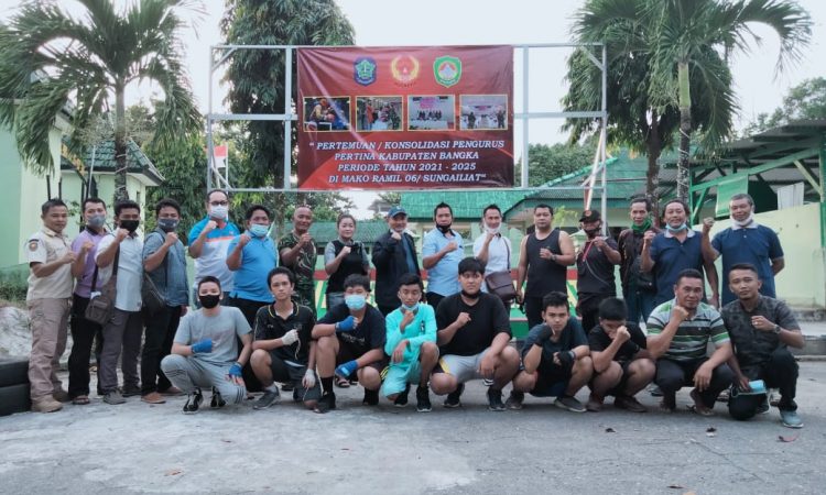 Bangka–Berandankrinews.com— SETELAH RESMI dilantik, pengurus Persatuan Tinju Amatir Indonesia (Pertina) Bangka dibawah kepemimpinan Mayor Inf. Danil B. Gala adakan acara Pertemuan/Konsolidasi Pengurus Pertina periode 2021-2025 bertempat di Mako Ramil 06/Sungailiat, pada hari Rabu (17/07/2021).