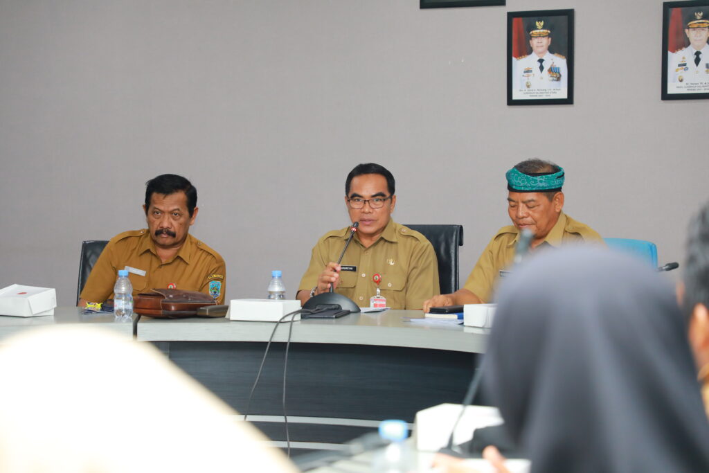 TANJUNG SELOR – Gubernur Kalimantan Utara (Kaltara), Drs. H. Zainal A. Paliwang,S.H.,M.Hum., diwakili Sekertaris Provinsi (Sekprov) Kaltara, Dr. H. Suriansyah, M.A.P., bersama Direktur Perencanaan dan Perwujudan Kawasan Transmigrasi, Dirjen Pembangunan dan Pengembangan Kawasan Transmigrasi Kemendes PDTT RI, Dr. Bambang Widiatmoko melaksanakan rapat bersama membahas ekspose Hak Pengelolaan Lahan (HPL) di wilayah Transmigrasi Kaltara, Selasa (23/1) di ruang Rapat Benuanta, Kantor Gubernur Kaltara.