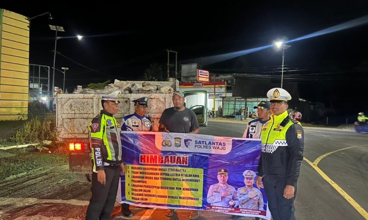 WAJO – Personel Sat Lantas Polres Wajo yang dipimpin Kanit Turjawali IPDA Fajri dan Kanit Kamsel IPTU H. Baharuddin melaksanakan kegiatan penindakan dan memberikan himbauan kepada pengendara yang melintas di Jalan Poros Sengkang-Siwa, Kec. Majauleng, Kab. Wajo.