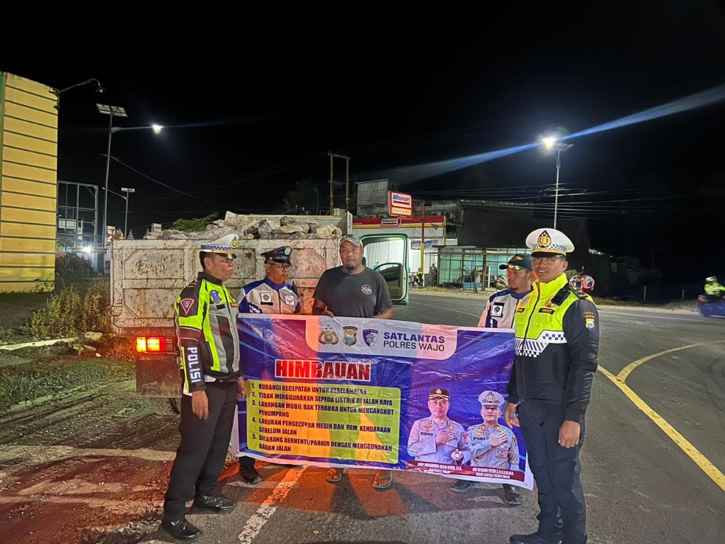WAJO – Personel Sat Lantas Polres Wajo yang dipimpin Kanit Turjawali IPDA Fajri dan Kanit Kamsel IPTU H. Baharuddin melaksanakan kegiatan penindakan dan memberikan himbauan kepada pengendara yang melintas di Jalan Poros Sengkang-Siwa, Kec. Majauleng, Kab. Wajo.