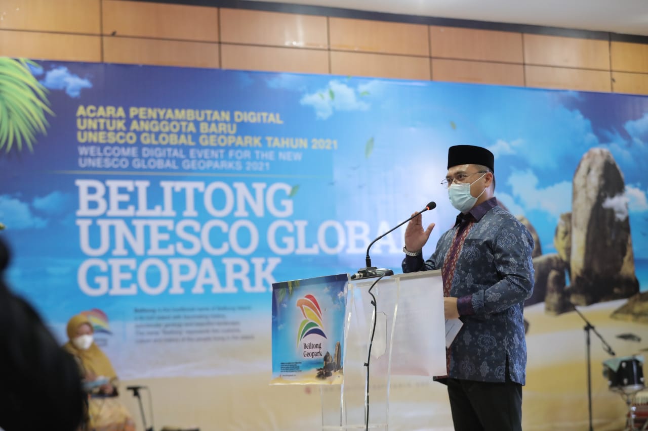 Hal ini disampaikan saat Gubernur Kepulauan Bangka Belitung, Erzaldi Rosman bersama Wakil Gubernur Abdul Fatah beserta istri hadir menjadi saksi sejarah terpilihnya Belitung Geopark sebagai Global Geopark pada acara Welcome Digital Event For The New Unesco Global Geoparks 2021, di ruang serba guna, Kantor Bupati Belitung, Kamis (22/04/21).