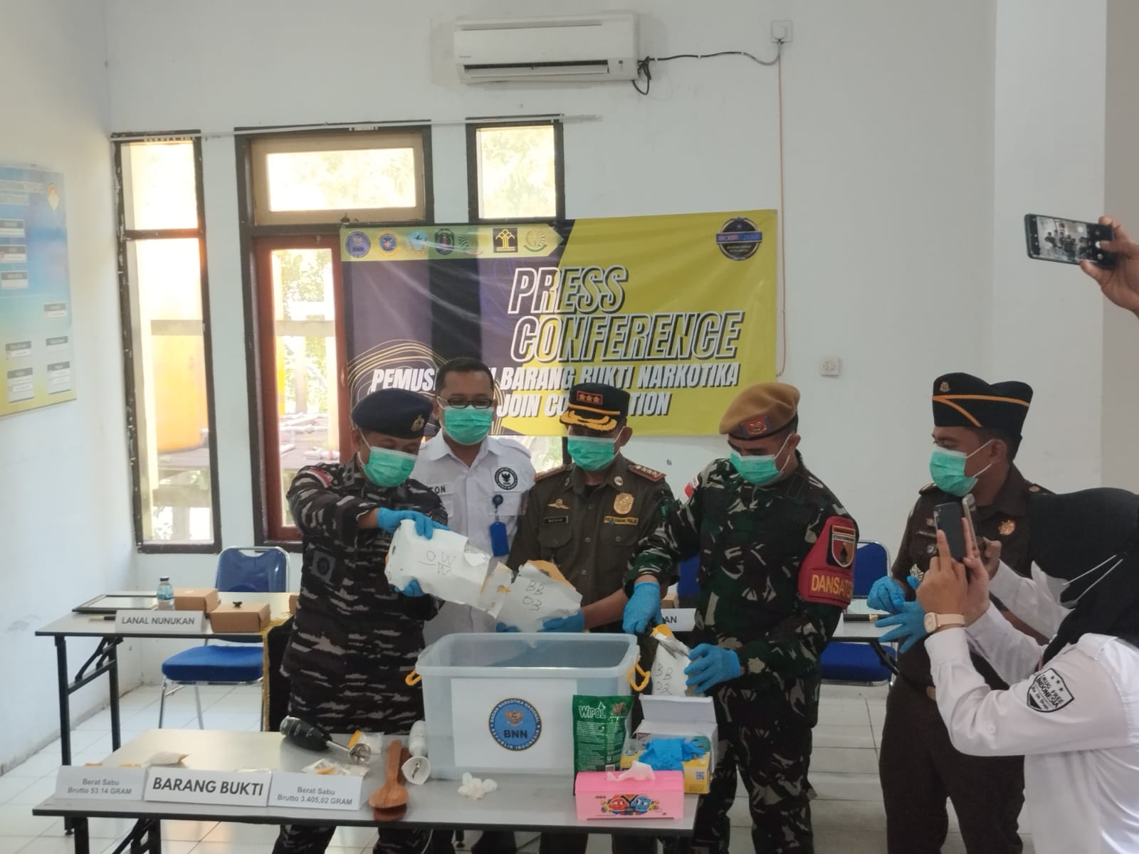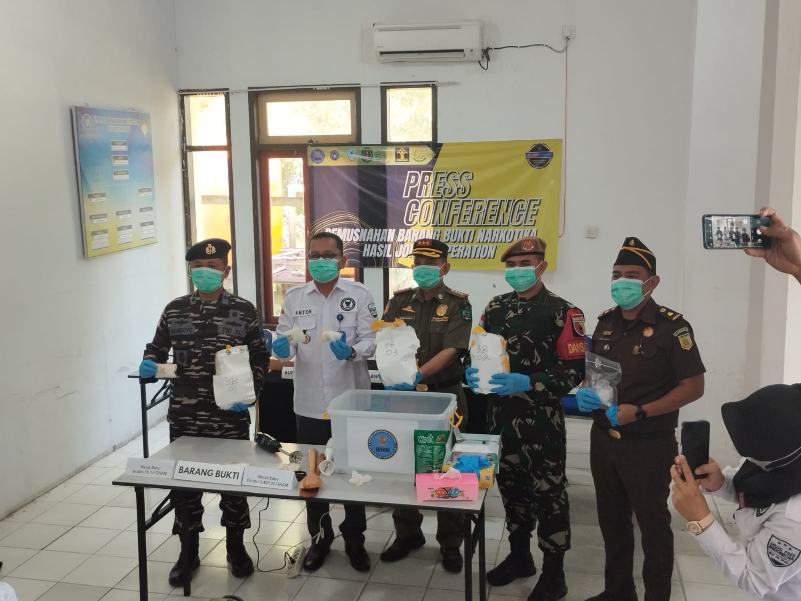 NUNUKAN – Badan Narkotika Nasional Kabupaten (BNNK) Nunukan menggelar siaran pers pemusnahan barang bukti narkotika jenis sabu dengan berat bruto ± 3.500 gram hasil join cooperation di Kantor BNNK Nunukan, Senin (12/02/2024) pagi.