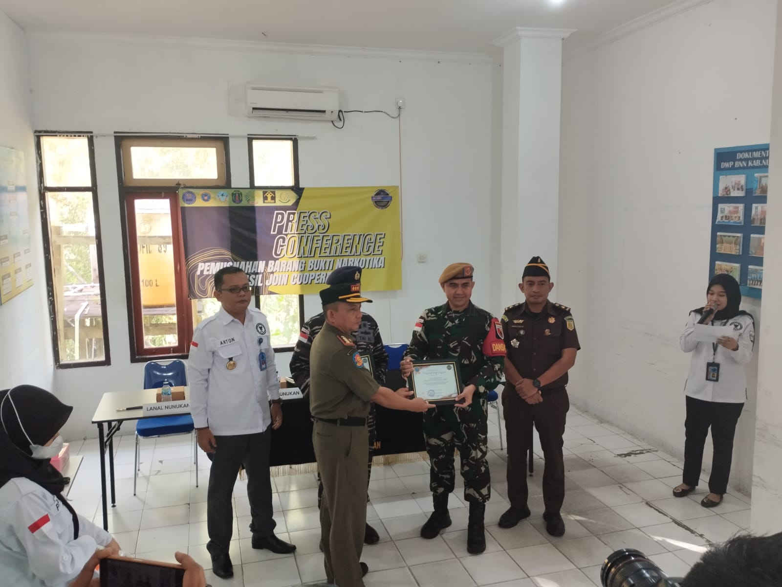 Selain kegiatan pemusnahan, BNNK juga memberikan piagam apresiasi kepada Lanal Nunukan dan Satgas Pamtas RI-Mly Yon Arhanud 8/MBC atas kinerja dalam pengamanan masuknya narkoba dari Malaysia ke Indonesia melalui Kab.Nunukan.