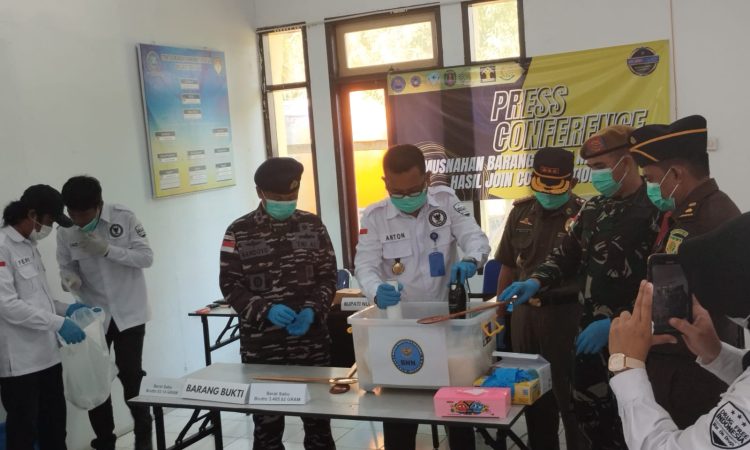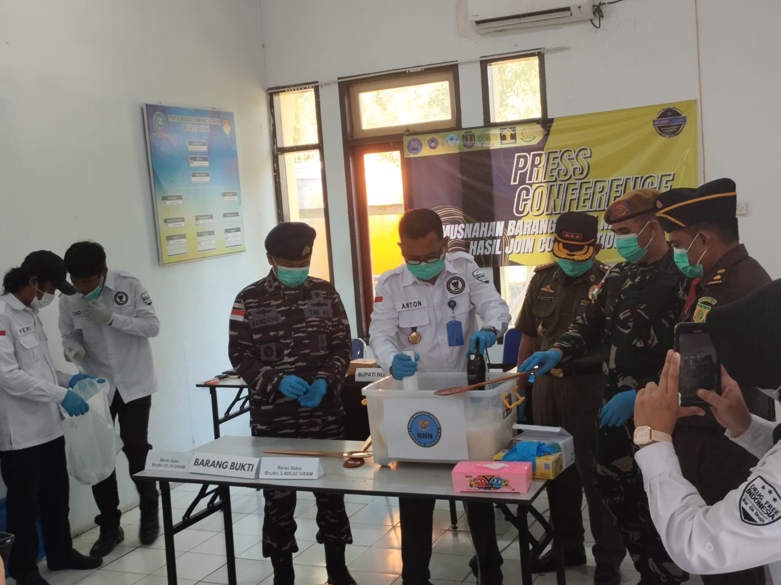 NUNUKAN – Badan Narkotika Nasional Kabupaten (BNNK) Nunukan menggelar siaran pers pemusnahan barang bukti narkotika jenis sabu dengan berat bruto ± 3.500 gram hasil join cooperation di Kantor BNNK Nunukan, Senin (12/02/2024) pagi.