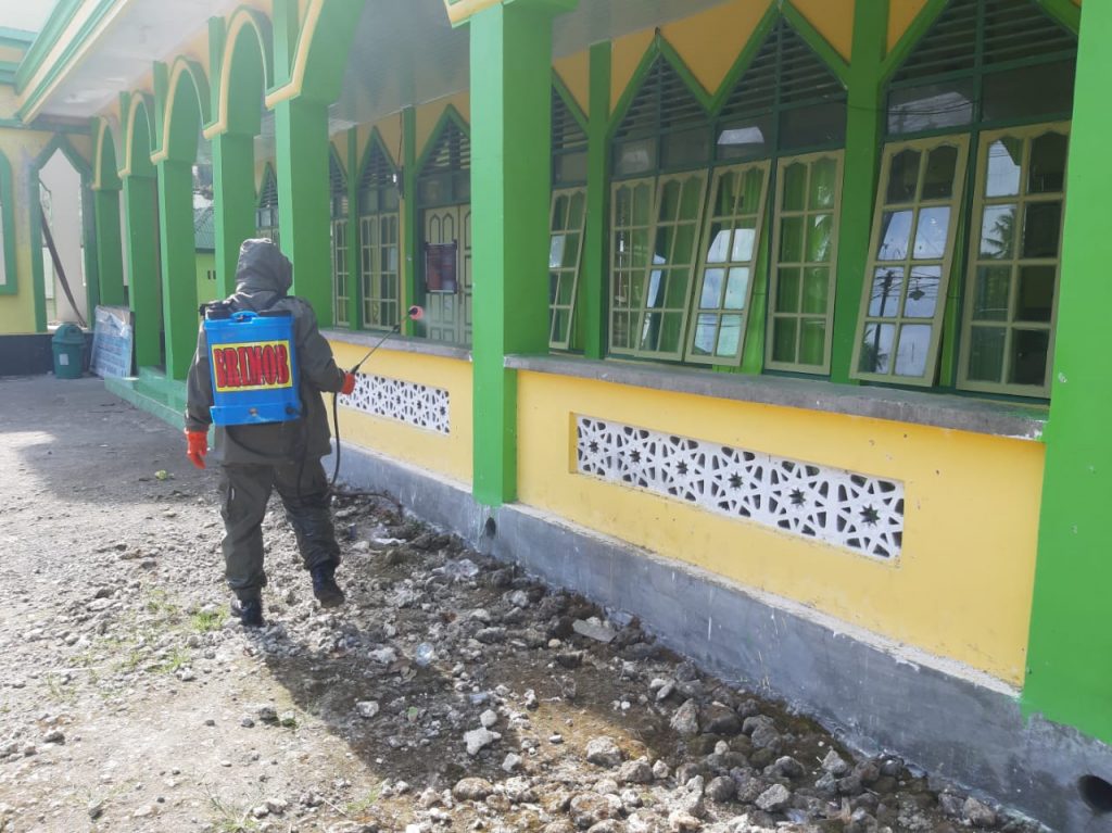 Demi meminimalisir tingkat penyebaran Covid 19 pada fasilitas-fasilitas umum, pada Kamis (12/02/21) Batalyon C Pelopor Satbrimob Polda Sulsel melakukan penyemprotan cairan desinfektan di 2 rumah ibadah umat muslim atau mesjid.