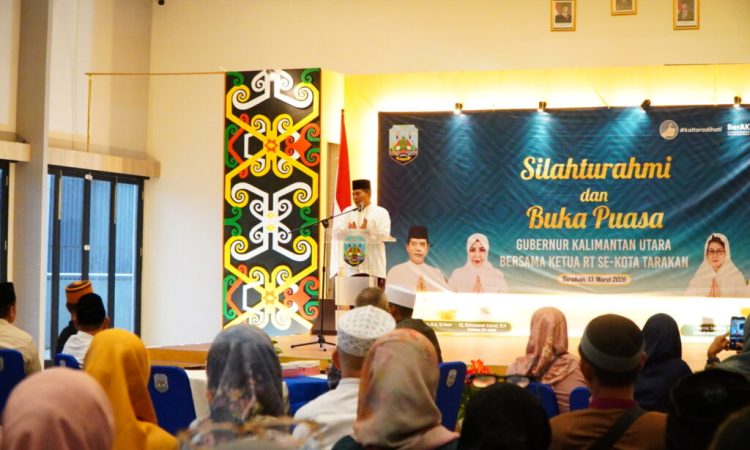 TARAKAN – Gubernur Kalimantan Utara (Kaltara) Dr. H. Zainal A. Paliwang, S.H., M.Hum menghadiri kegiatan buka puasa bersama Ketua Rukun Tetangga (RT) se-Kota Tarakan di Gedung Serbaguna Badan Penghubung (Banhub) Kaltara di Tarakan, Jumat (13/3).