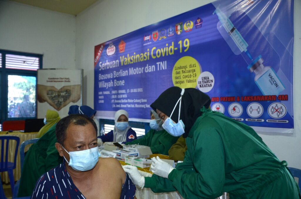 sudah menjalin kerjasama dengan Bosowa cabang Bone dalam pelaksanaan Vaksinasi Covid-19 berjalan dengan Lancar aman dan terkendali sehingga warga masyarakat kota Watampone Bisa terlayani dengan Baik “Tutup” letkol Kav Budiman SH Dihadapan Awak media