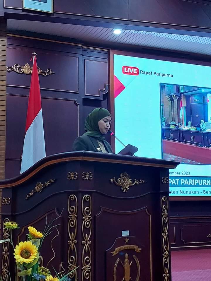 NUNUKAN – Bupati Nunukan Hj. Asmin Laura Hafid hadiri rapat Paripurna ke-10 masa persidangan I tahun sidang 2023-2024 dalam rangka Persetujuan bersama terhadap Ranperda Kabupaten Nunukan tentang perubahan APBD T.A 2023.