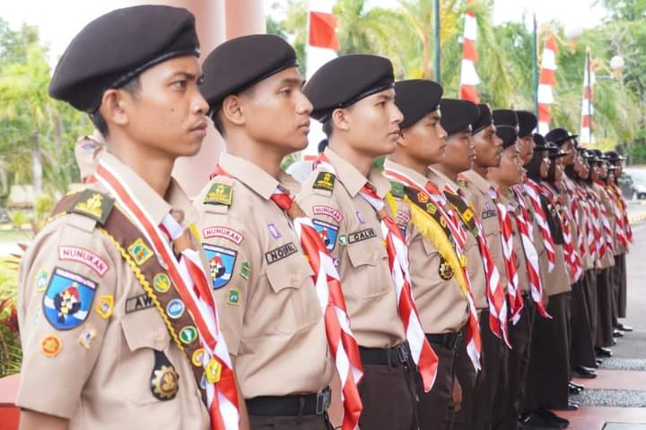 NUNUKAN – Bupati Nunukan Hj. Asmin Laura Hafid selaku Ketua Majelis Pembimbing Cabang Gerakan Pramuka Nunukan melepas Kontingan Cabang Pramuka Nunukan yang akan mengikuti kegiatan Raimuna Nasional ke – XII di Jakarta. Acara pelepasan itu dilaksanakan di halaman Kantor Bupati Nunukan, Kamis (10/08).