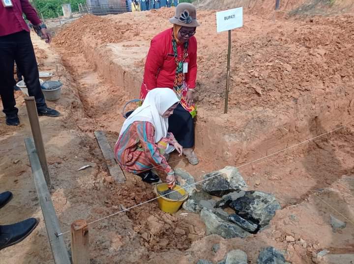 NUNUKAN – Bupati Nunukan, Hj. Asmin Laura Hafid, SE, MM, P.Hd melakukan peletakan batu pertama pembangunan Mushola SMA Negeri 2 Nunukan Selatan Kecamatan Nunukan Selatan, Kamis (10/08/23).