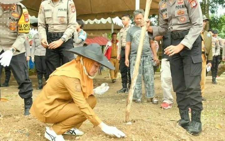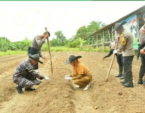 Bupati Nunukan Hj Asmin Laura Hafid bersama Forkopimda, Ketua DPRD melakukan tanam jagung jenis bibit Talenta di atas lahan 2 Hektar yang berada di jalan Mangga Kelurahan Selisun, Selasa 21 Januari 2025.