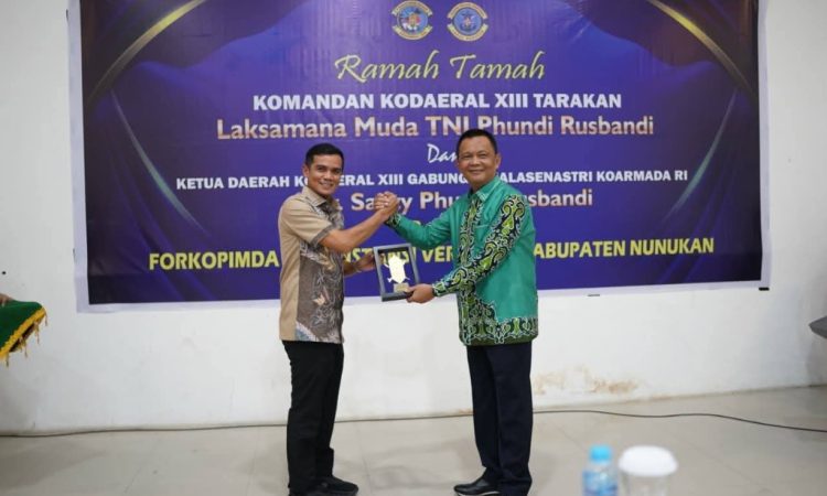 NUNUKAN – Bupati Nunukan H. Irwan Sabri mengucapkan selamat datang kepada Dankodaeral XIII Tarakan Laksamana Muda TNI Pundhi Rusbandi dan Ibu Ketua Daerah Kodaeral Gabungan Jalasenastri Koarmada RI Ny. Santy Pundhi Rusbandi beserta rombongan.