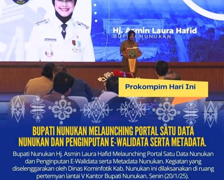 NUNUKAN – Bupati Nunukan Hj. Asmin Laura Hafid Melaunching Portal Satu Data Nunukan dan Penginputan E-Walidata serta Metadata Nunukan. Kegiatan yang diselenggarakan oleh Dinas Kominfotik Kab. Nunukan ini dilaksanakan di ruang pertemuan lantai V Kantor Bupati Nunukan. Senin (20/1/25).