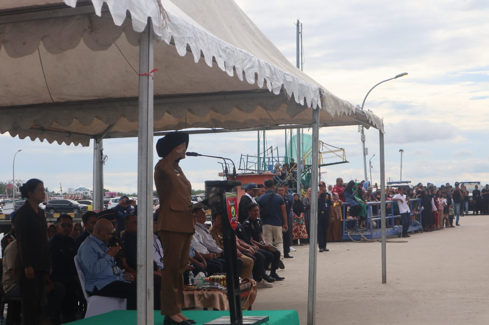NUNUKAN- Bupati Nunukan Hj.Asmin Laura Hafid memimpin upacara pengantaran Satgas Pamtas RI-Malaysia wilayah Kaltara sektor Timur Batalyon Arhanud 8/MBC. Upacara tersebut berlangsung di Dermaga Pelabuhan Internasional Tunon Taka Kab.Nunukan. Selasa, 27/08/2024 sore.