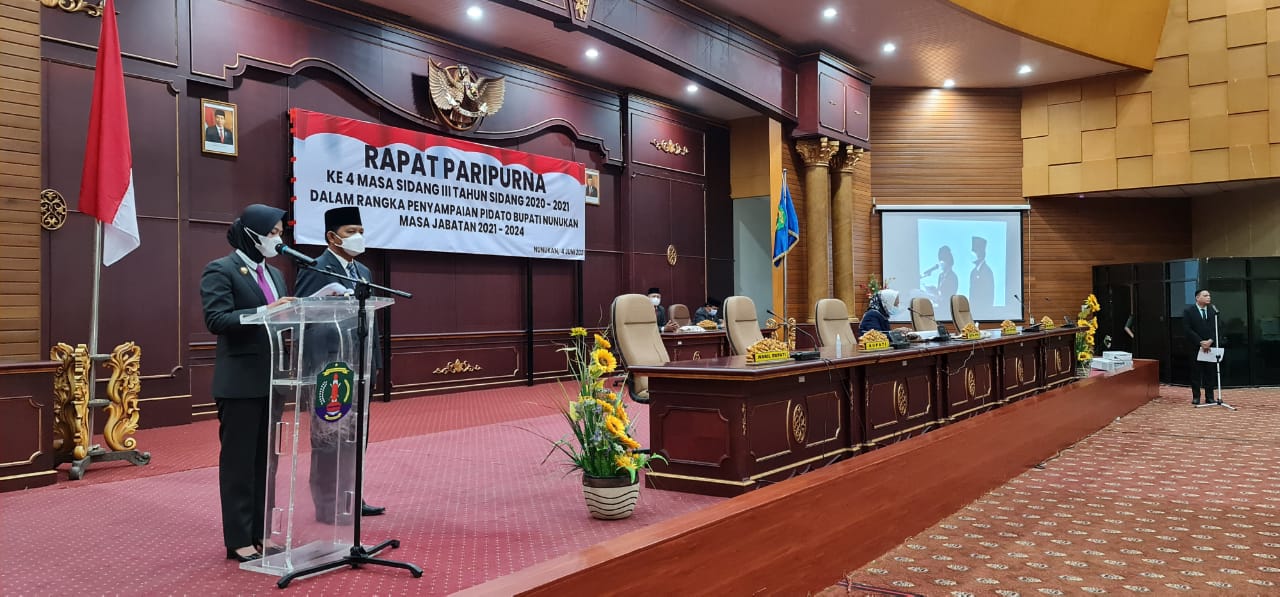 Demikian diutarakan Bupati Nunukan, Asmin Laura Hafid dalam Rapat Paripurna keempat masa Sidang III Tahun 2021 tentang Penyampaian Pidato Bupati masa jabatan 2021 – 2024 di ruang Paripurna, Kantor DPRD Kabupaten Nunukan, Jumat (4/6).