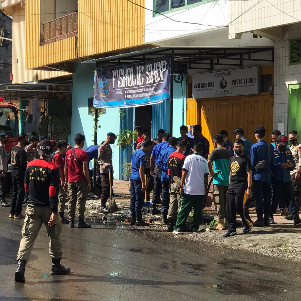 kegiatan Bakti sosial bersih bersih sampah Ini Juga melibatkan warga masyarakat sekitar, Brimob C pelopor Bone,Satpol PP ,damkar ,BPBD, kelurahan, personil Polsek Tanete Riattang