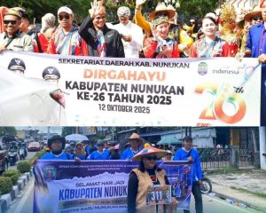 Nunukan– Warna-warni budaya dan semangat kebersamaan dalam rangka memperingati Hari Ulang Tahun (HUT) Kabupaten Nunukan ke-26 tahun 2025, terlihat pada peserta Pawai Budaya yang dilaksanakan, Sabtu (11/10/2025).