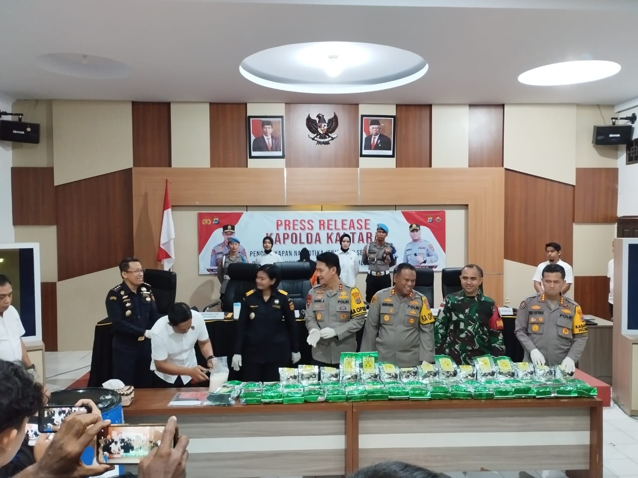 Hal tersebut diungkapkan saat kegiatan siaran pers yang dipimpin langsung oleh Kapolda Kaltara, Irjen Pol. Daniel Adityajaya, S.H., S.I.K., M.Si bersama Kapolres Nunukan, AKBP Taufik Nurmandia, S.I.K., M.H, Direktorat Resnarkoba Polda Kaltara, Kombes Pol. Agus Yulianto S.I.K., S.Sos, Kepala Kantor Wilayah (Kakanwil) Bea Cukai Kalimantan Bagian Timur (Kalbagtim), Kusuma Santi Wahyuningsih dan Komandan Satuan Tugas Pengamanan Perbatasan (Dansatgas Pamtas) RI-Mly Yon Arhanud 8/MBC, Letkol Arh Iwan Hermaya di Aula Sebatik, Markas Komando (Mako) Polres Nunukan, Jumat (22/03/2024) pagi.