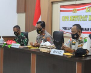 NUNUKAN – Bupati Nunukan Hj. Asmin Laura Hafid menjadi Inspektur Upacara pada Apel Gelar Pasukan Operasi Ketupat Kayan Tahun 2021 di Lapangan di Lapangan Apel Tri brata Mako Polres Nunukan Jalan Bharatu M. Aldy Kelurahan Nunukan Selatan, Rabu (5/5).