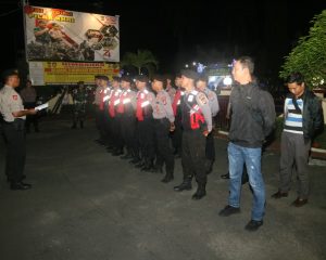 NUNUKAN – Sabtu tanggal 28 Desember 2019 sekira pukul 21.00 wita bertempat di Halaman Polsek Kota Nunukan telah dilaksanakan apel gabungan TNI / Polri dalam rangka Cipta Kondisi Menjelang Malam Tahun Baru di Wilayah Kabupaten Nunukan. Kegiatan ini di pimpin oleh Kasat Sabhara Polres Nunukan AKP Syahrir Bajeng, SH ( Perwira Pengendali ) dan didampingi oleh Kanit Turjawali Sabhara Polres Nunukan Ipda Endang Sudrajat ( Perwira Pelaksana ).