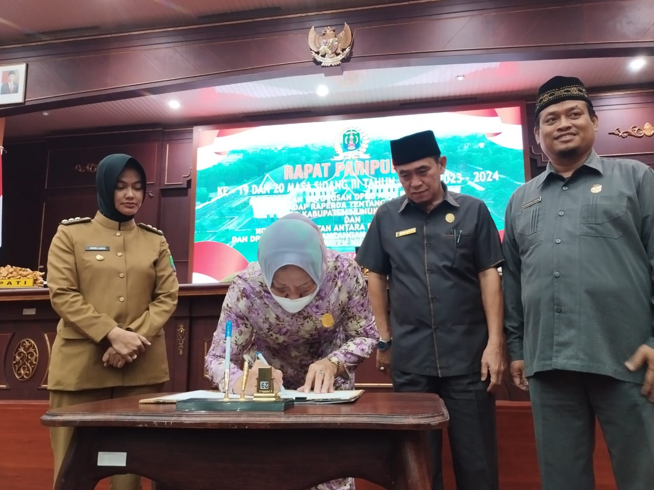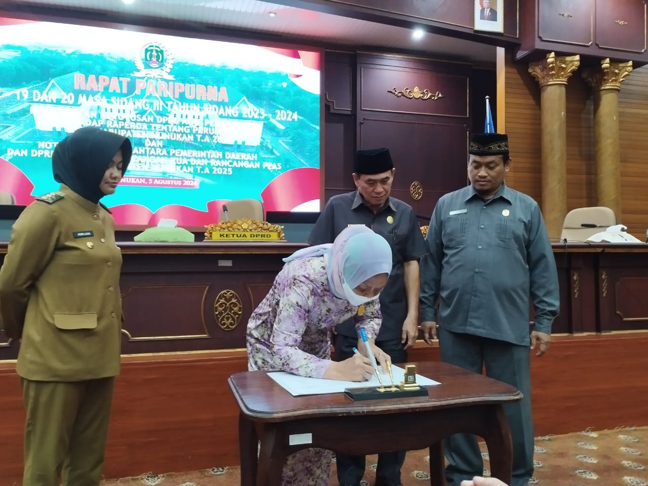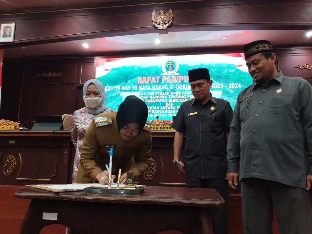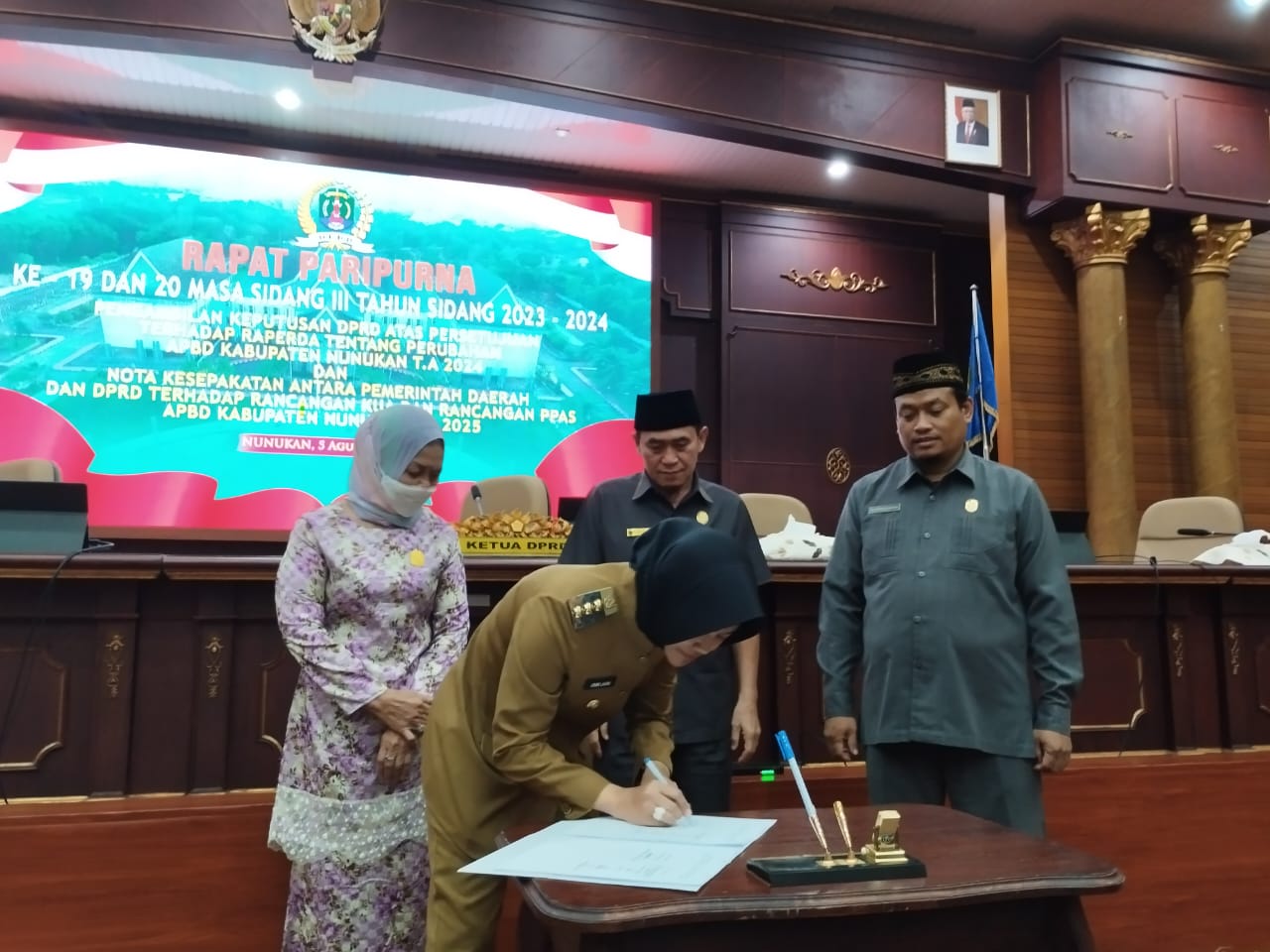 Kesepakatan tersebut dipimpin langsung Ketua DPRD Kab. Nunukan, Hj. Leppa dan dibacakan oleh Kepala Bagian (Kabag) Hukum dan Persidangan DPRD Nunukan, Romi R. Setiadi pada surat keputusan nomor 9 tahun 2024.