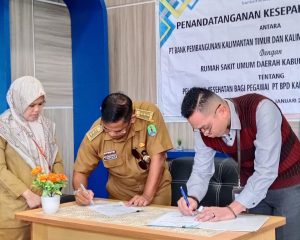 NUNUKAN – PT. Bank Pembangunan Daerah (BPD) Kalimantan Timur dan Kalimantan Utara atau Bank Kaltimtara Cabang Nunukan melakukan penandatanganan MoU bersama Rumah Sakit Umum Daerah (RSUD) Kabupaten Nunukan terkait pelayanan kesehatan pegawai BPD Kaltim Kaltara Kantor Cabang (KC) Nunukan di ruang Media Center RSUD Nunukan, Selasa (30/01/2024) pagi.