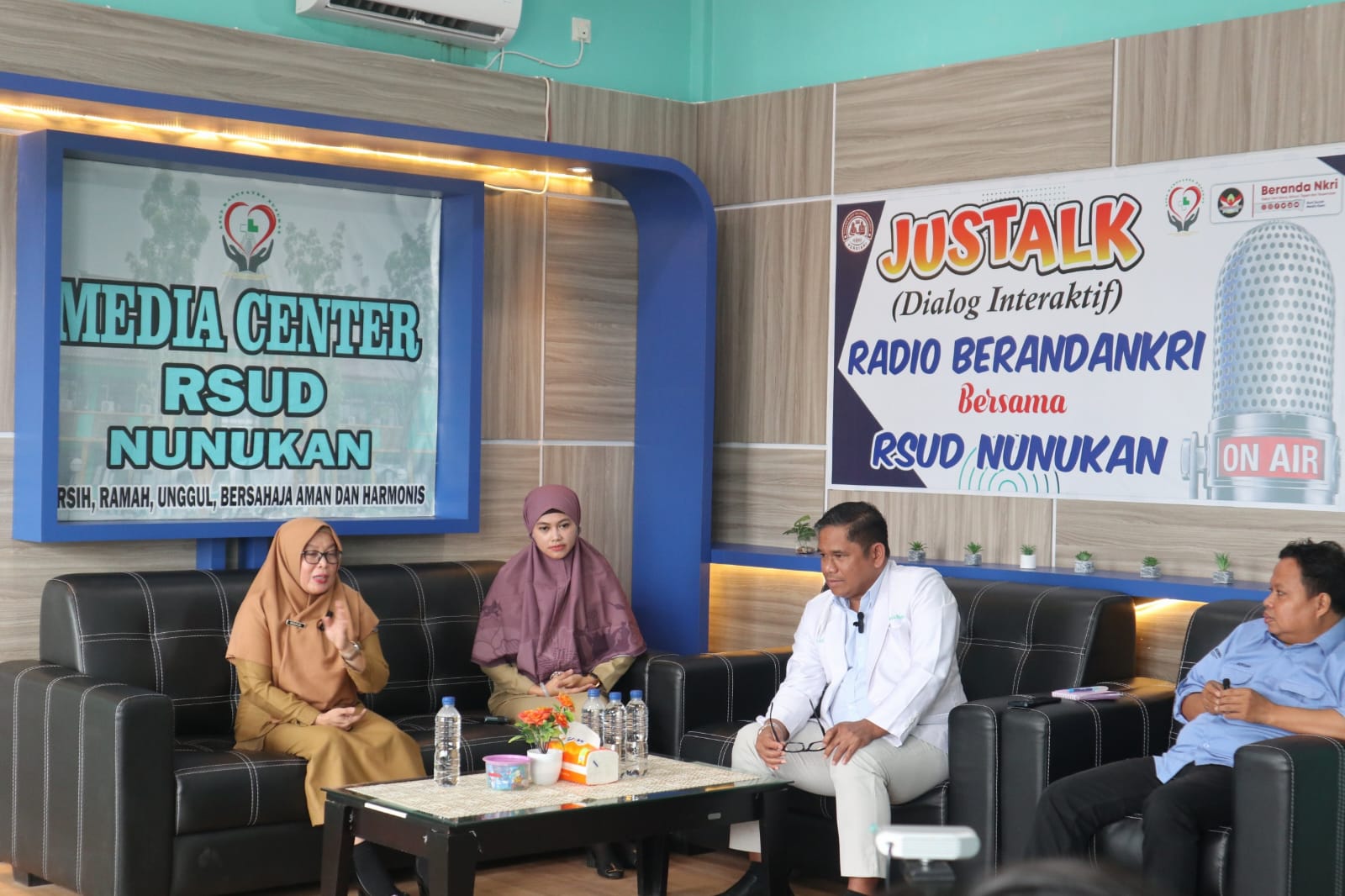 NUNUKAN – Disiarkan langsung Lembaga Penyiaran Swasta (LPS) Radio Berandankri, Rumah Sakit Umum Daerah (RSUD) Kabupaten Nunukan menggelar Talkshow dengan tema Meningkatkan Mutu Pelayanan Kesehatan di Wilayah Perbatasan, bertempat di ruang Media Center RSUD Nunukan, Selasa (22/08/2023).