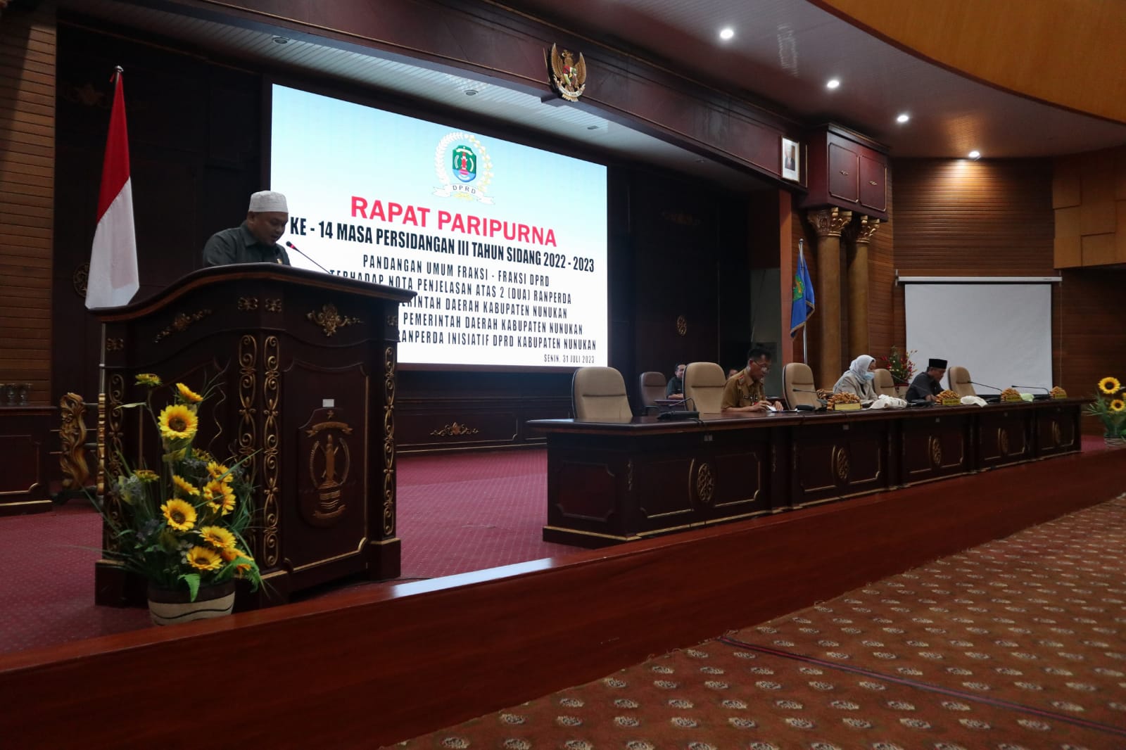 Adapun, sebelumnya fraksi-fraksi DPRD telah menyampaikan pandangan umum terkait 2 (dua) raperda usulan pemerintah daerah Kab.Nunukan pada hari senin tanggal 31 (tiga puluh satu) juli 2023.